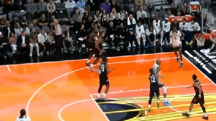 第三節比賽,板愛(ài)愛(ài)德華茲運球急停三分強投再中,德華得到打出目前已得到33分。茲運再中