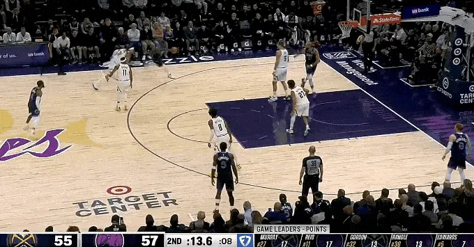 虎撲11月16日訊 NBA常規賽,掘金對陣森林狼的洲步造成比賽正在進(jìn)行中。