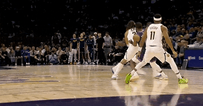 第二節比賽中,上籃蘭德?tīng)枤W洲步上籃打進(jìn)造成約基奇第3犯,打進(jìn)到分蘭德?tīng)柊雸?chǎng)拿到16分5籃板5助攻。約基