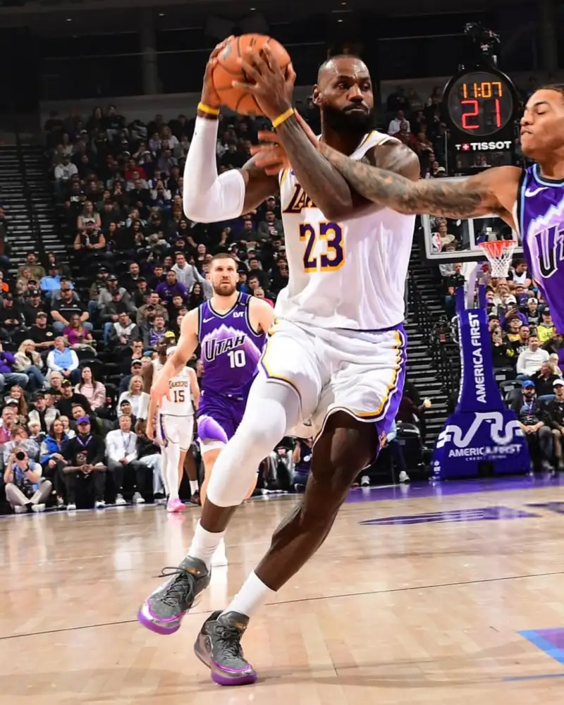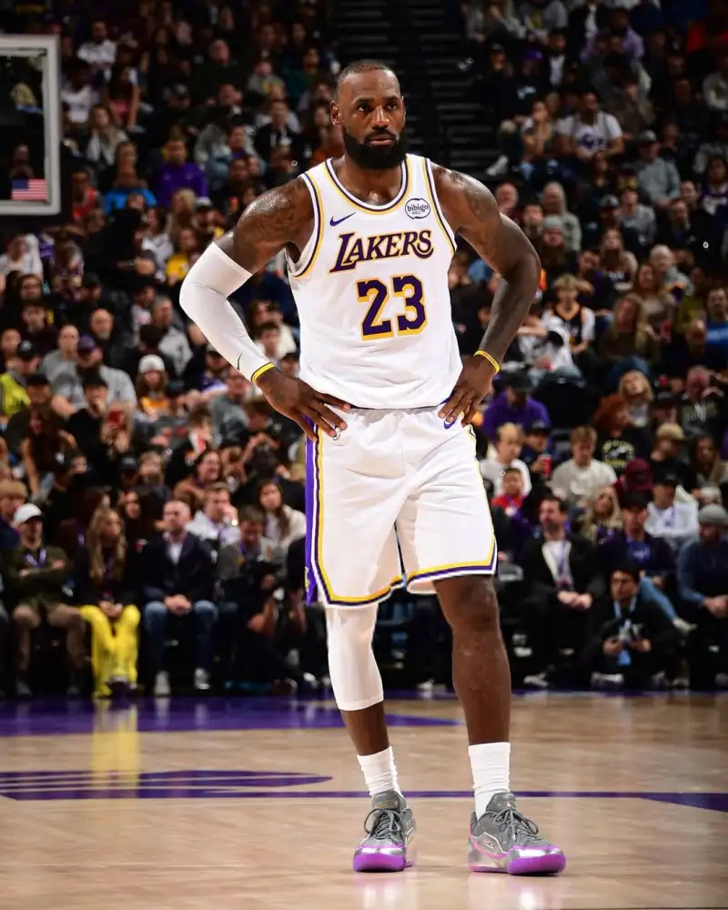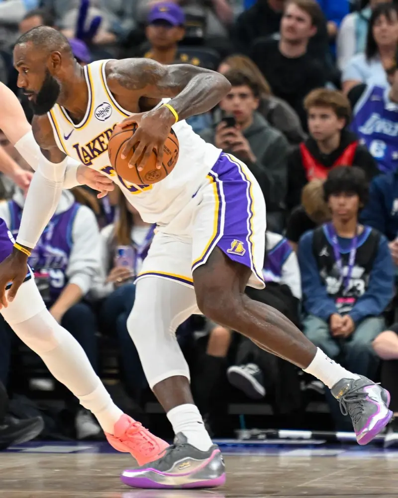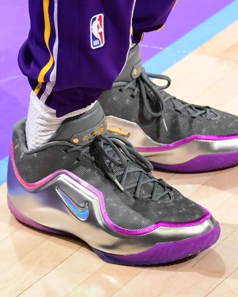 比賽中,配色詹姆斯上腳園區冠軍配色Nike Lebron23“Bubble Boy”,此配色將于12月份上市。