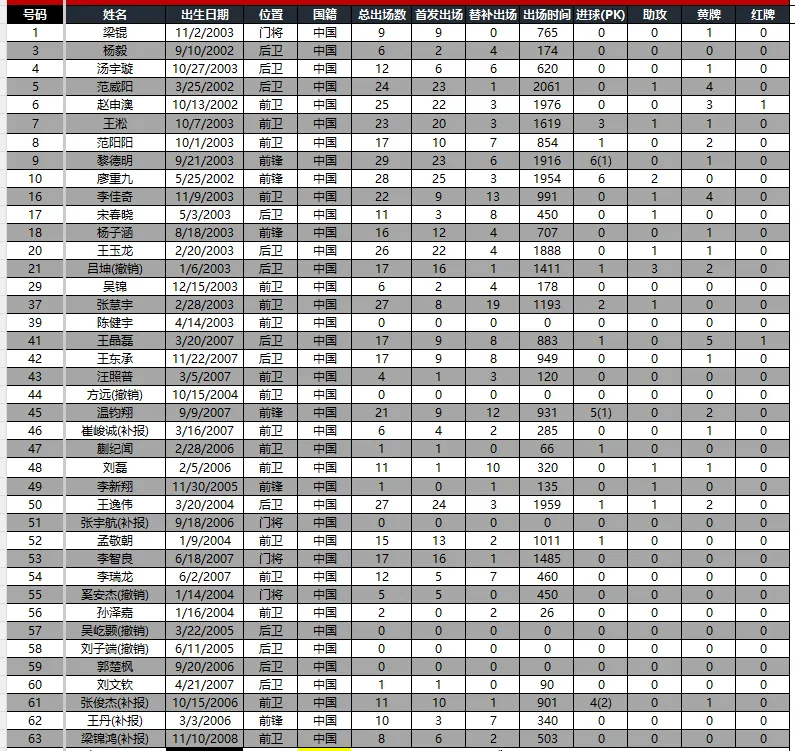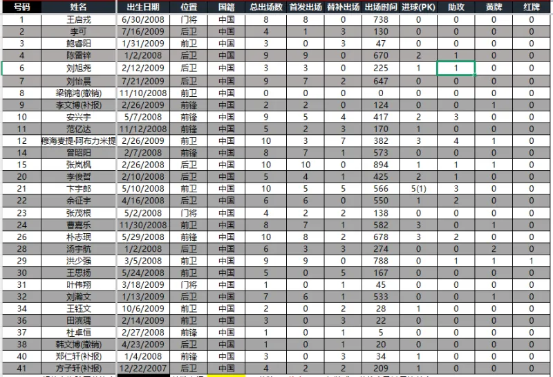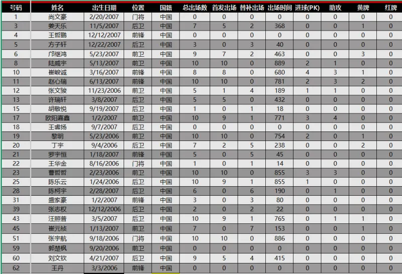 本賽季b隊球員所有的數據統計如上(數據整理統計@上海上港資料數據),今年b隊幾個(gè)關(guān)鍵人物。