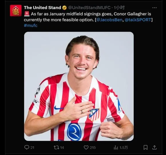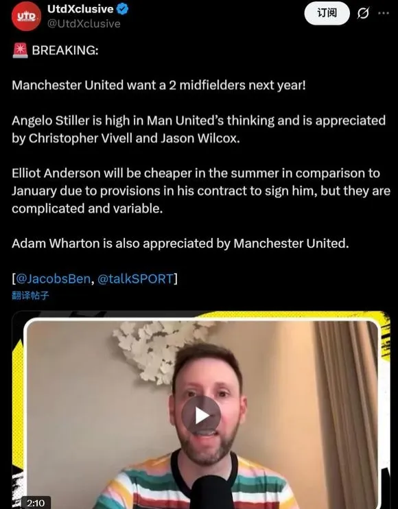 Ben Jacobs:曼聯(lián)將在明年引進(jìn)兩名中場(chǎng),欣賞施蒂勒關(guān)注沃頓但冬窗而言加拉格爾看上去更可行