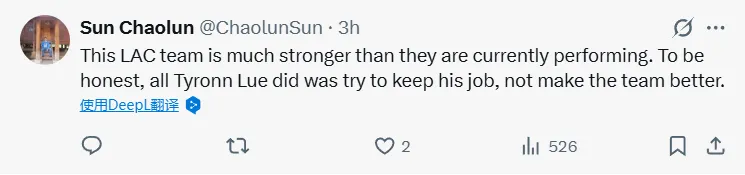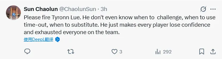 -請解雇泰倫·盧。他根本不懂何時(shí)該挑戰判罰、何時(shí)該叫暫停、何時(shí)該換人。他只會(huì )讓每位球員喪失信心,把全隊都累垮。