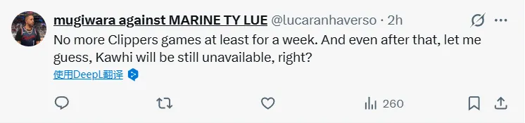 -至少一周內沒(méi)有快船的比賽了。就算之后有比賽,讓我猜猜,卡哇伊還是不會(huì )上場(chǎng)對吧?