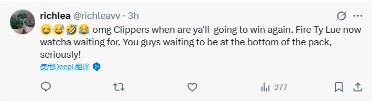 - 天啊,快船,你們到底什么時(shí)候才能贏(yíng)球啊。趕緊炒掉泰倫·盧,還在等什么?你們是想徹底淪為聯(lián)盟墊底隊嗎,說(shuō)真的!
