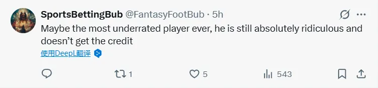 -或許史上最被低估的球員,他至今仍表現得極其出色,卻始終未能獲得應有的認可。