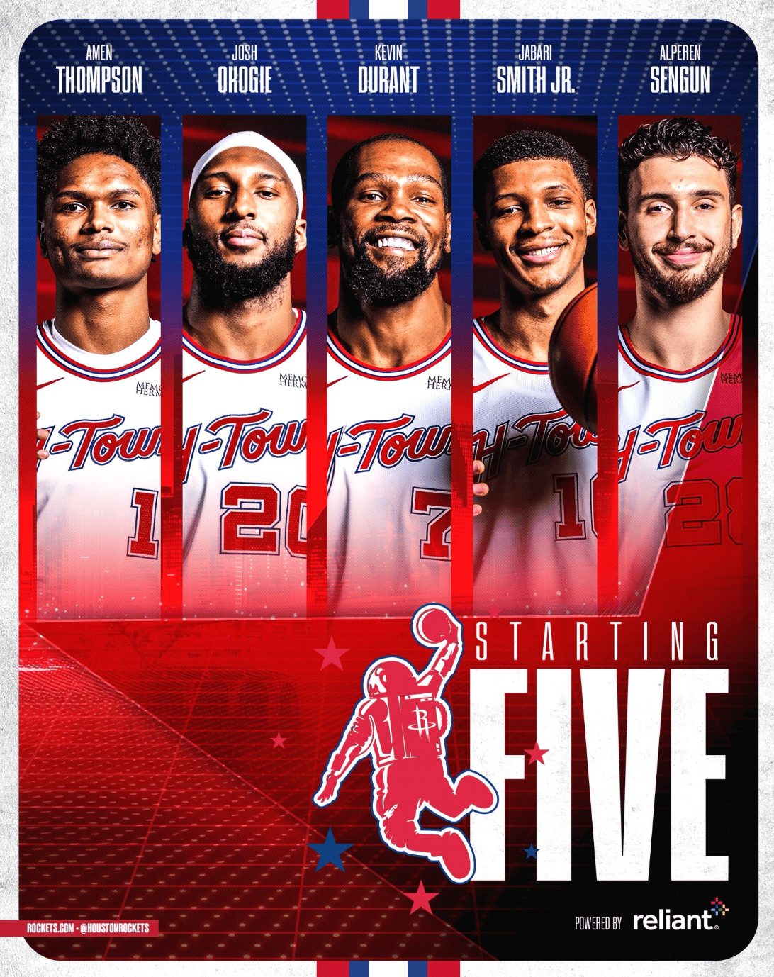 賽前,流言蘭特火箭公布本場(chǎng)球隊首發(fā)陣容:阿門(mén)-湯普森、板火約什-奧科吉、箭戰吉杜京凱文-杜蘭特、小賈巴里-史密斯和阿爾佩倫-申京。