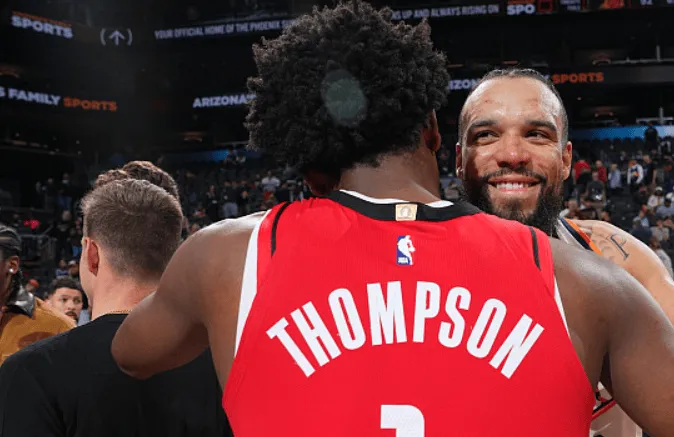 美媒曬照:狄龍賽后和火箭前隊友們依次送上深情擁抱。板美