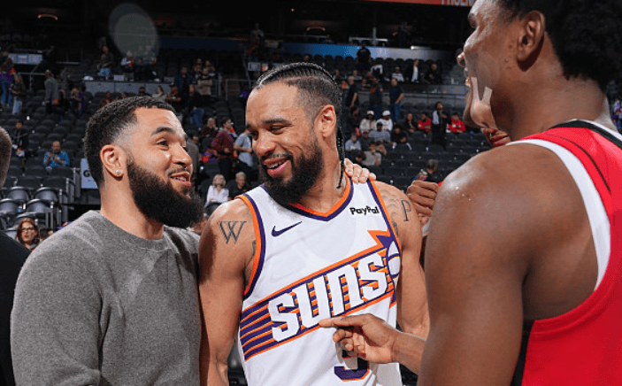 美媒曬照:狄龍賽后和火箭前隊友們依次送上深情擁抱。