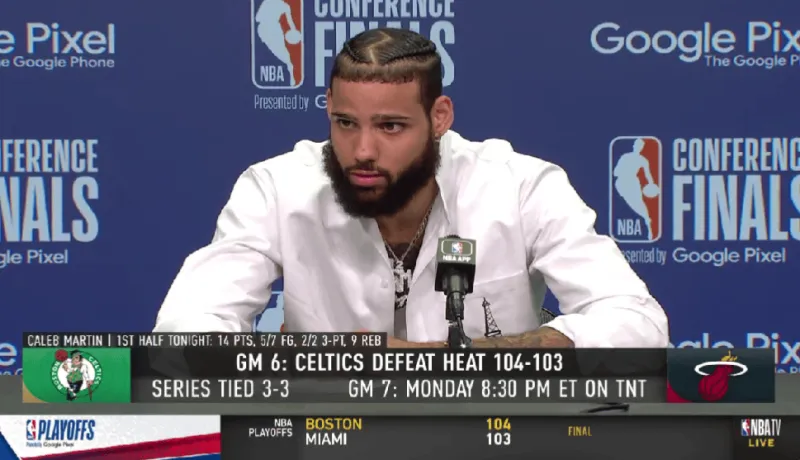 賽后熱火球員凱萊布-馬丁接受了記者的采訪(fǎng)。