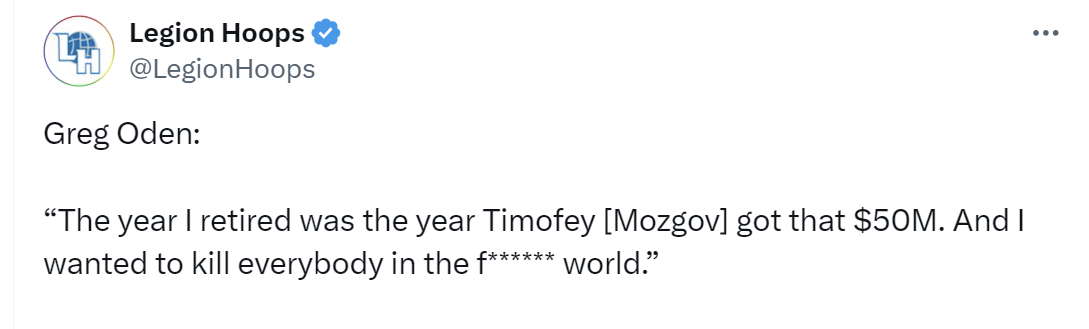 “我退役的那一年,莫茲戈夫簽下了5千萬(wàn)合同,年莫氣得我想干爆整個(gè)世界。茲戈”