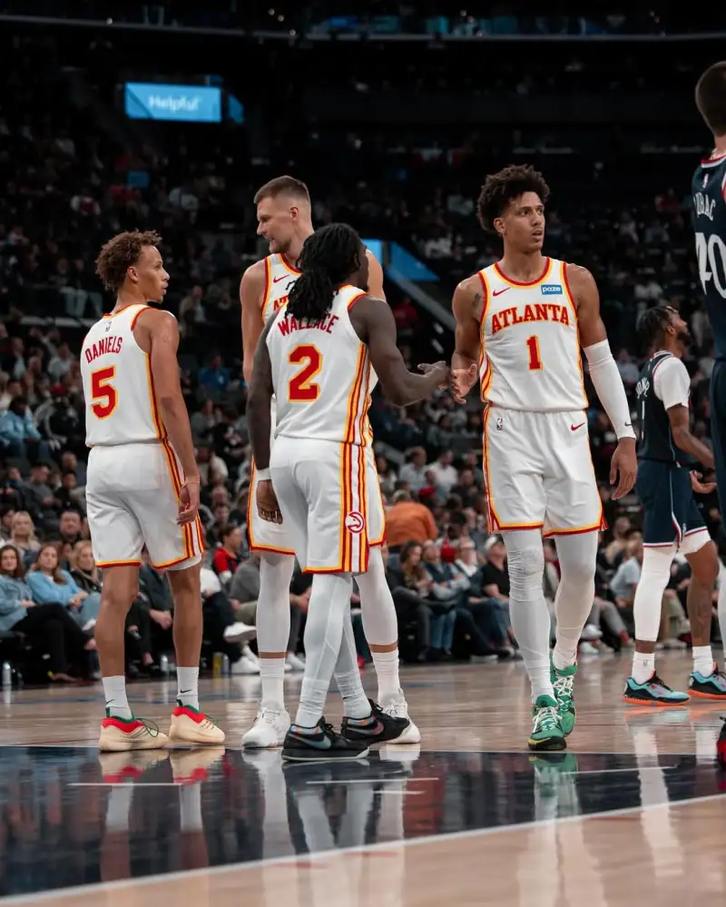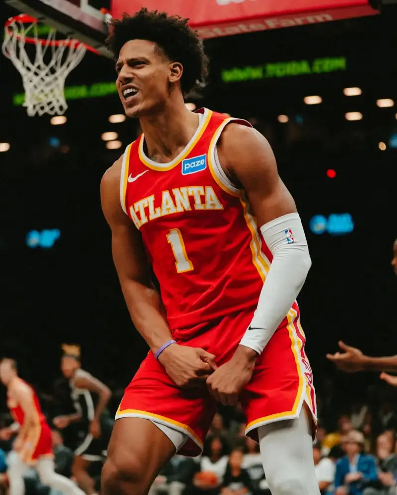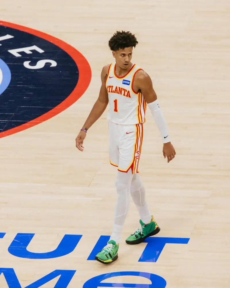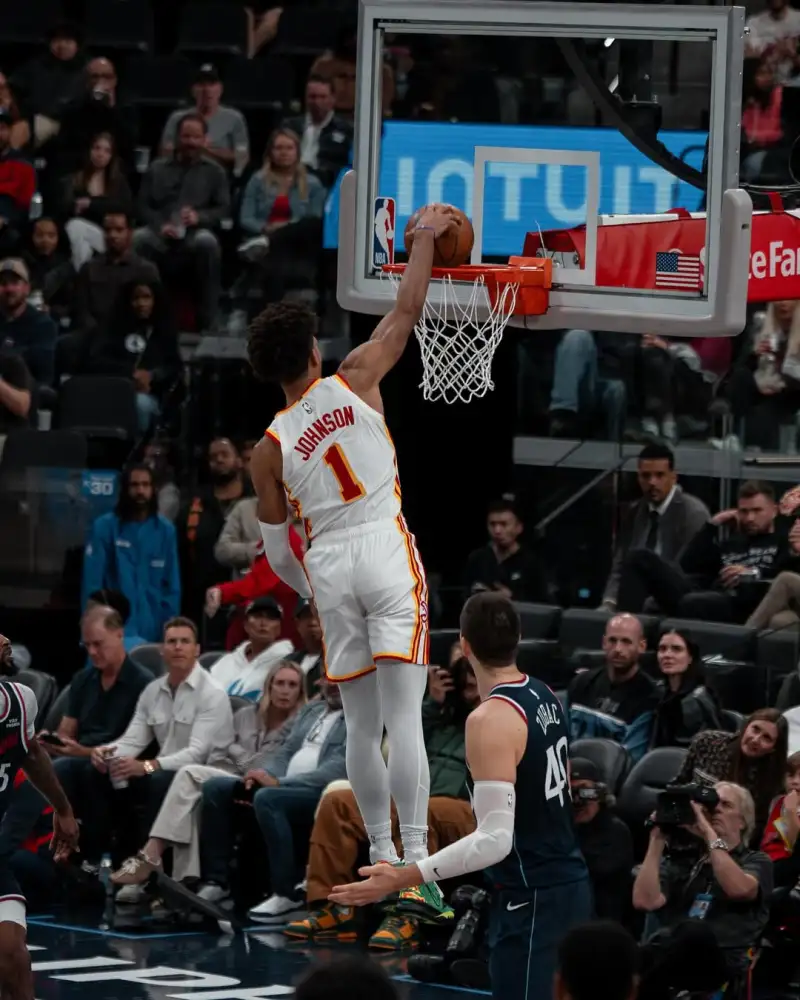 本賽季至今,雙選手杰老鷹球員杰倫-約翰遜場(chǎng)均可以得到21.5分9.5籃板6.3助攻1.8搶斷。流言倫