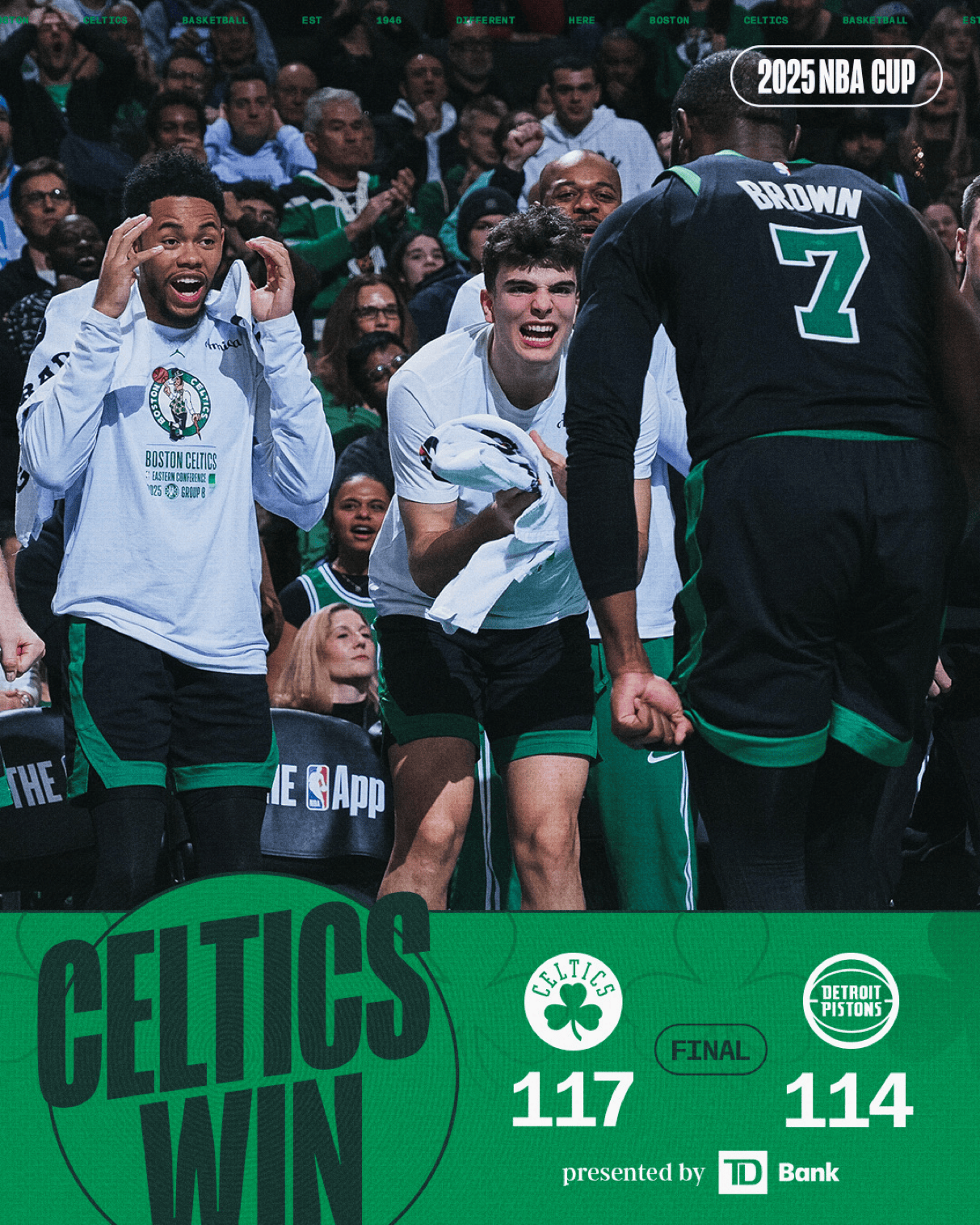 虎撲11月27日訊 今日NBA杯小組賽,凱爾特人117-114擊敗活塞。紀錄結