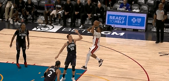 第三節比賽,熱火鮑威爾滯空跳投再次打進(jìn)2+1,滯空再次熱火第三節打出19-8高潮。跳投