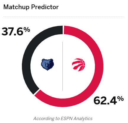[流言板]ESPN預測明日灰熊vs猛龍比賽:猛龍勝率62.4%略占上風(fēng)