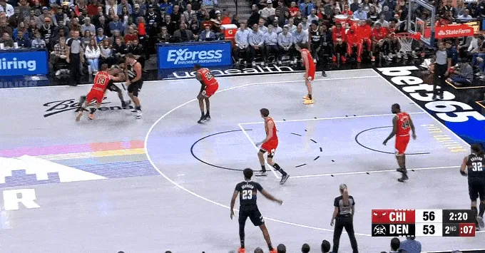 虎撲11月18日訊 NBA常規賽,掘金對陣公牛的分投分追比賽正在進(jìn)行中。