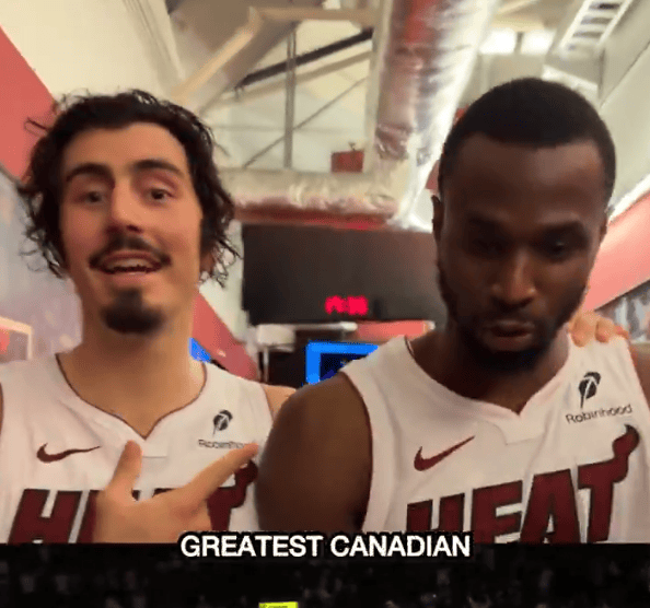 賽后熱火球員小海梅-哈克斯稱(chēng)贊完成空接絕殺的板空威金斯:“有史以來(lái)最偉大的加拿大人。(The接絕 Greatest Canadian of All Time)”