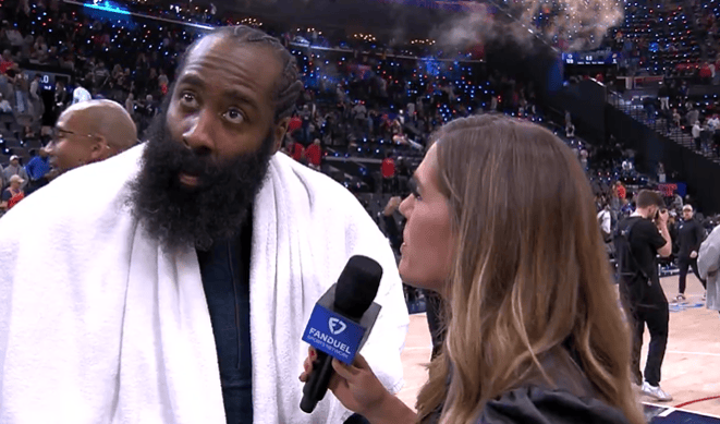 虎撲10月25日訊 NBA常規賽,快船129-102戰勝太陽(yáng)。賽后,詹姆斯-哈登接受了采訪(fǎng)。