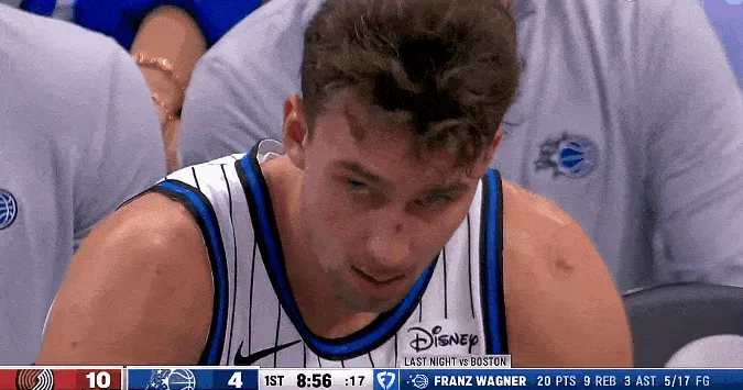 小瓦格納搶籃板被肘到面部,鼻子出血下場(chǎng)緊急處理
