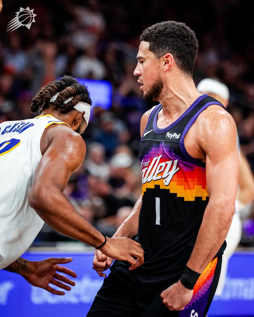虎撲11月14日訊 太陽(yáng)官方更新Ins,曬出一張太陽(yáng)球員德文-布克的布克賽場(chǎng)照與球迷分享。