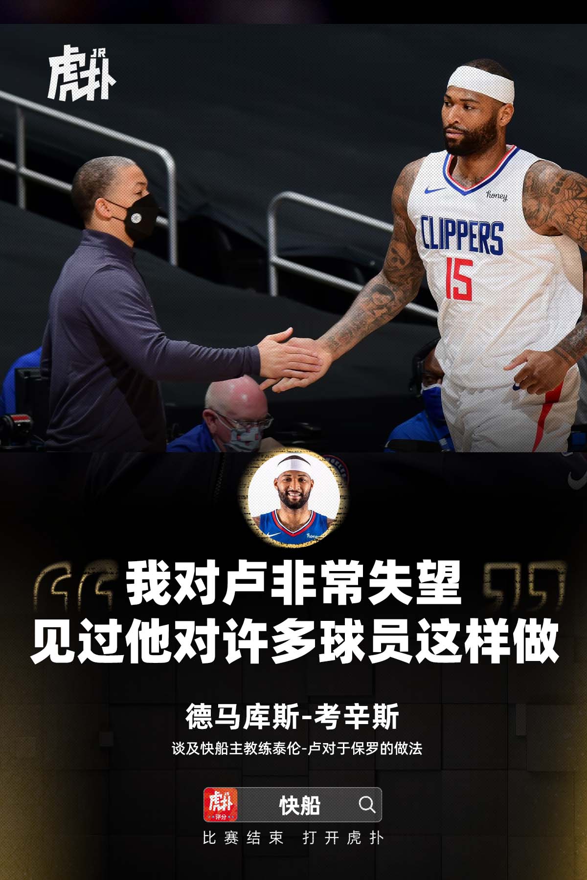 虎撲12月05日訊 今日,前NBA球員德馬庫斯-考辛斯在節目Run It Back談到了快船主教練泰倫-盧: