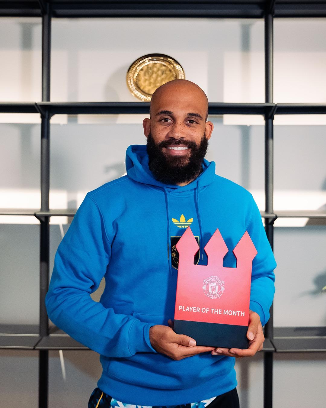 虎撲10月31日訊 曼聯(lián)官方曬照,姆伯莫領(lǐng)取俱樂(lè )部10月份最佳球員獎杯。照姆最佳這是月份姆伯莫本賽季第2次當選俱樂(lè )部月度最佳球員。