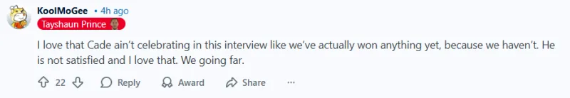 -(22贊)我喜歡坎寧安在采訪(fǎng)中沒(méi)有慶祝,好像我們真的贏(yíng)了什么似的,因為我們還沒(méi)有。他并不滿(mǎn)足,我喜歡這一點(diǎn)。我們會(huì )走得更遠。