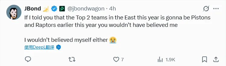 -如果今年早些時(shí)候我告訴你東部前兩名的球隊會(huì )是活塞和猛龍,你肯定不會(huì )相信我