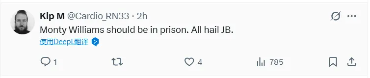 -蒙蒂·威廉姆斯該進(jìn)監獄。JB,萬(wàn)歲。