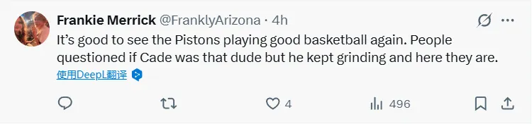 -看到活塞重拾好狀態(tài)真是令人欣慰。當初人們質(zhì)疑坎寧安是否夠格,但他始終兢兢業(yè)業(yè),如今球隊終于迎來(lái)了轉機。
