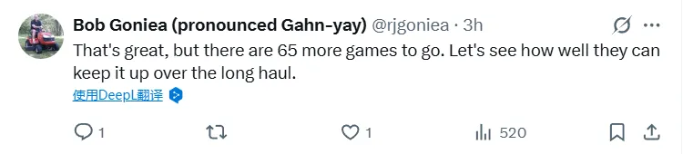 -這很棒,但還有65場(chǎng)比賽要打。讓我們看看他們能否在漫長(cháng)的賽季中保持這樣的狀態(tài)。