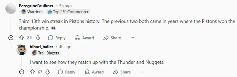 -(211贊)活塞隊史上的第三次13連勝。前兩次都是在活塞奪冠的年份。