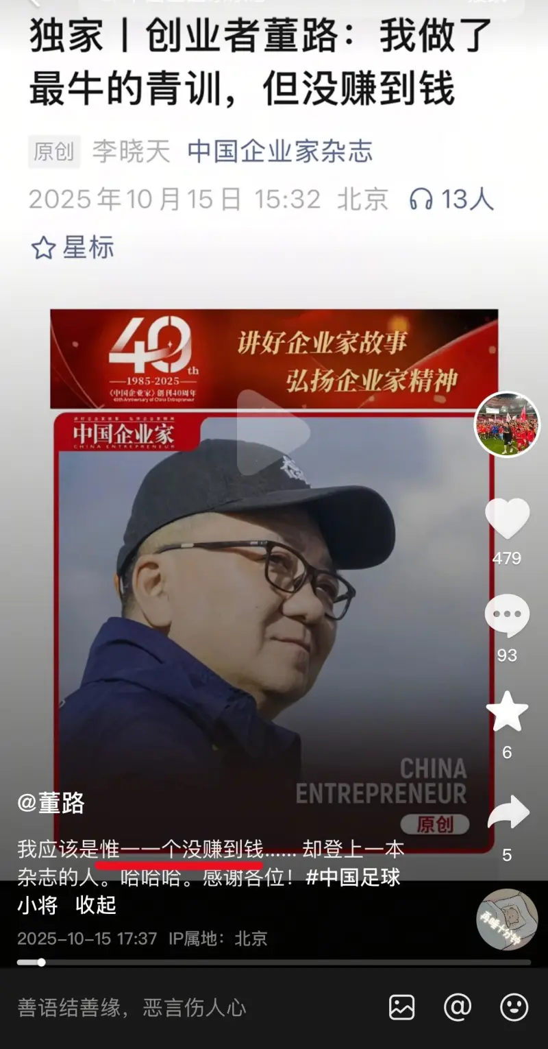 董路自稱(chēng)自己做青訓沒(méi)掙到錢(qián),您信嗎?