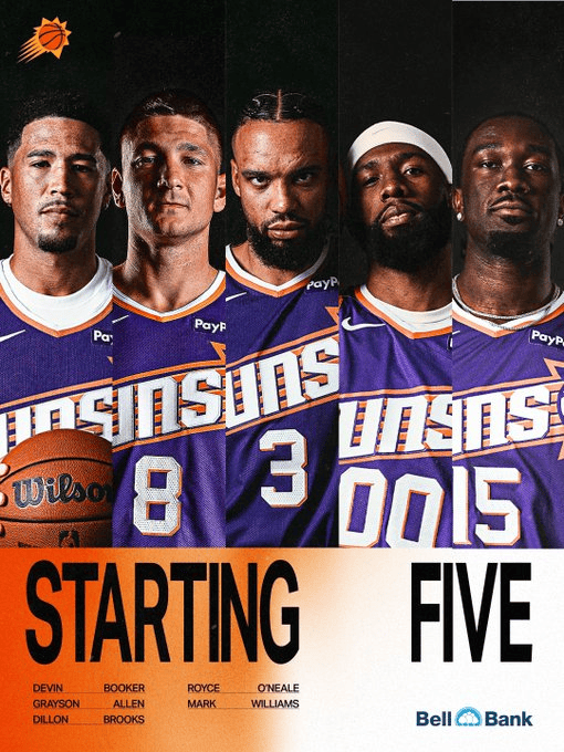 賽前,太陽(yáng)官方更新動(dòng)態(tài),曬出了本場(chǎng)比賽的首發(fā)陣容: