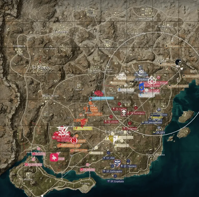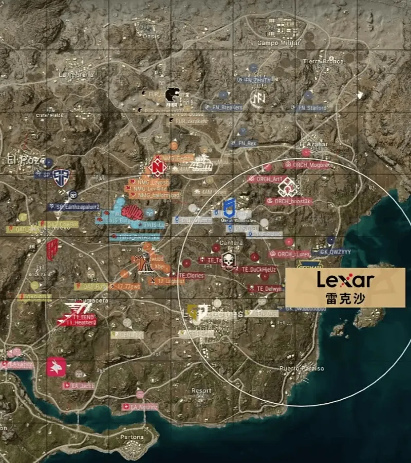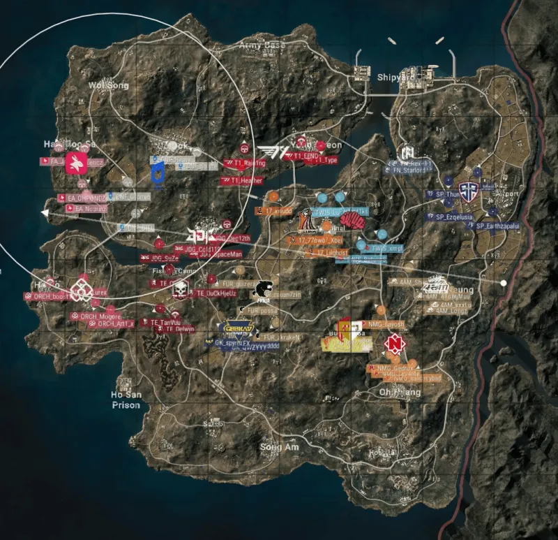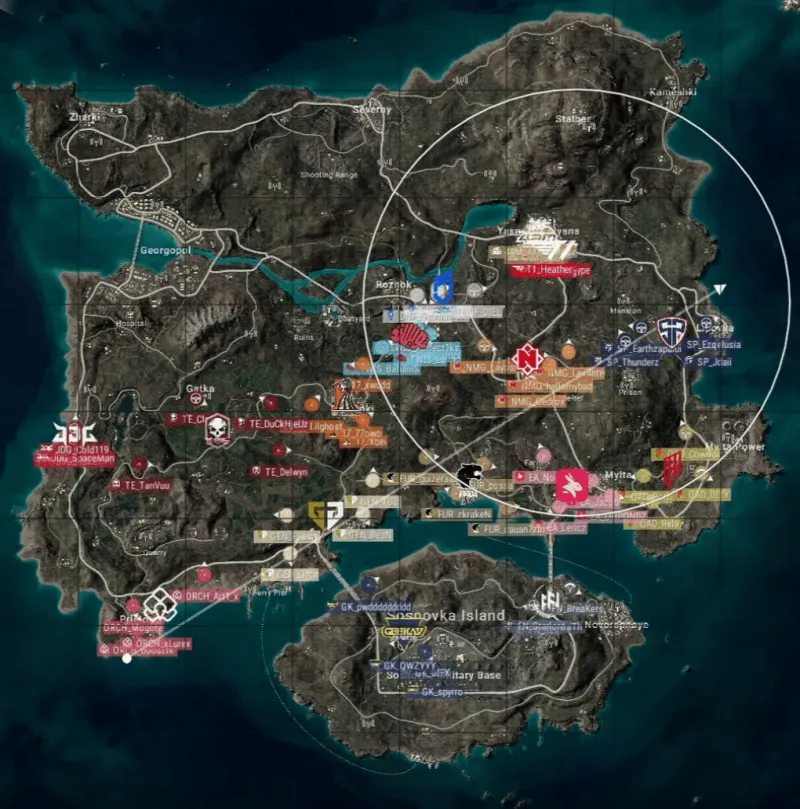 階段6剩余7隊,17、NMG、EA、4AM在圈型西北角混戰,前三者率先被淘汰,SP隨后被淘汰,4AM僅剩1人。