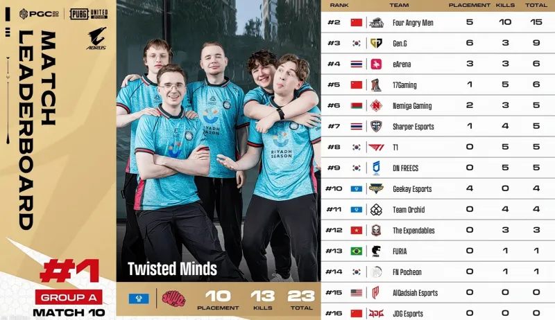 虎撲11月30日訊 PGC2025A組小組賽第二日第三局比賽結束,本局賽況如下。