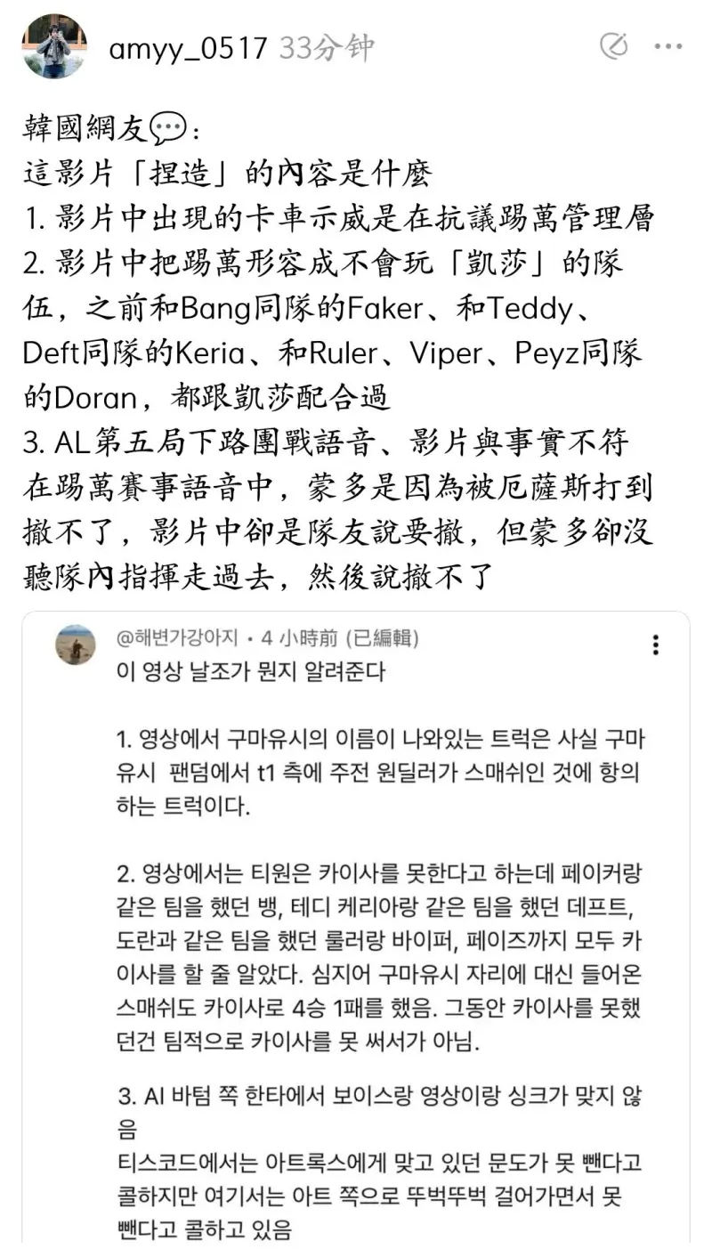韓網(wǎng)爆料韓拳造假惡意剪輯T1賽后語(yǔ)音被扒出由說(shuō)的韓網(wǎng)韓拳后語(yǔ)