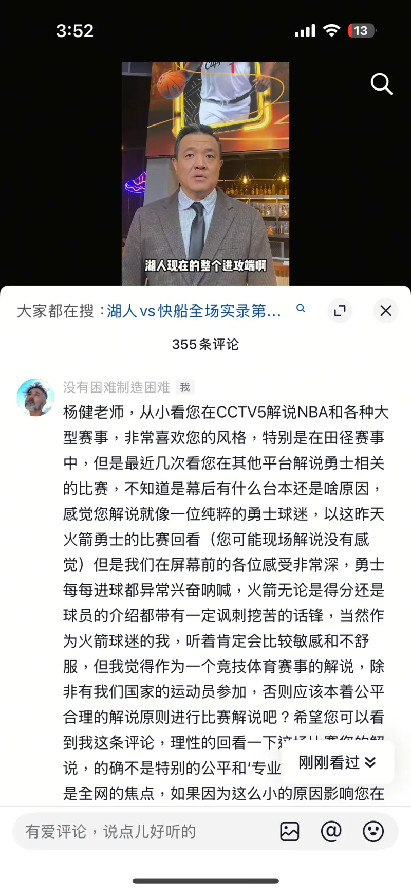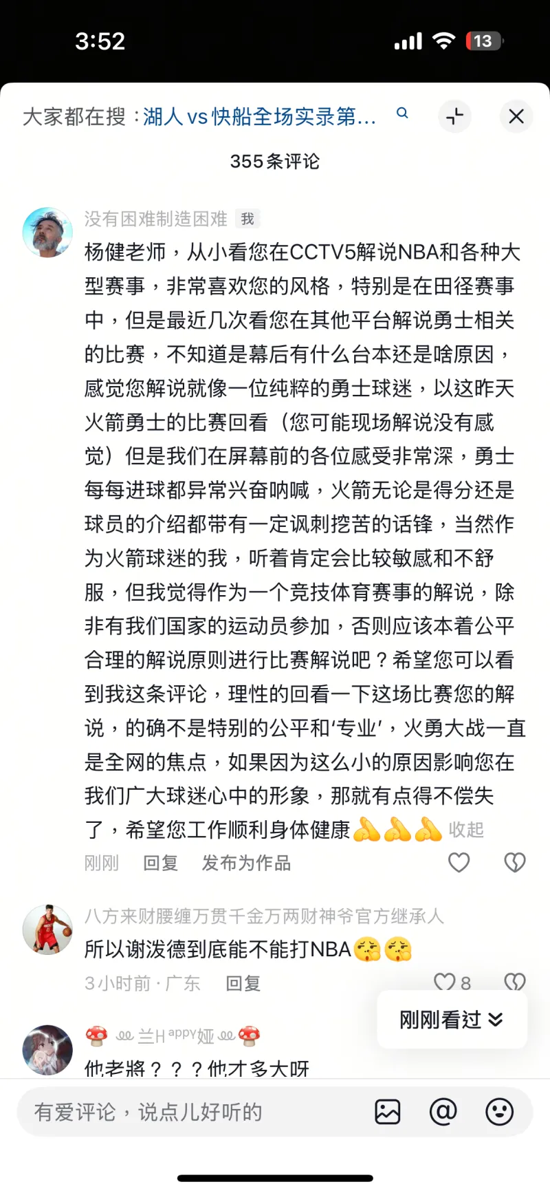 咪咕火勇的咪咕解說(shuō)是楊健老師?難以想象啊這么偏激和不公平的解說(shuō)!由杜京門(mén) 發(fā)表在火箭專(zhuān)區 https://bbs.hupu.com/rockets