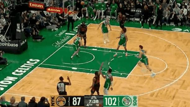 NBA常規賽,尼克斯對陣凱爾特人的布里比賽正在進(jìn)行中。