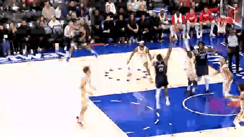 比賽的絲滑守拋第三節,喬治持球突破,歐洲絲滑歐洲步晃開(kāi)防守拋投打進(jìn)。步晃