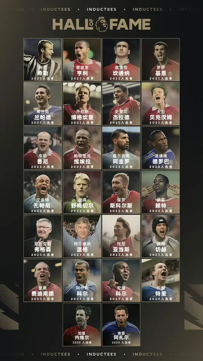 英超名人堂至今,26人全名單一覽