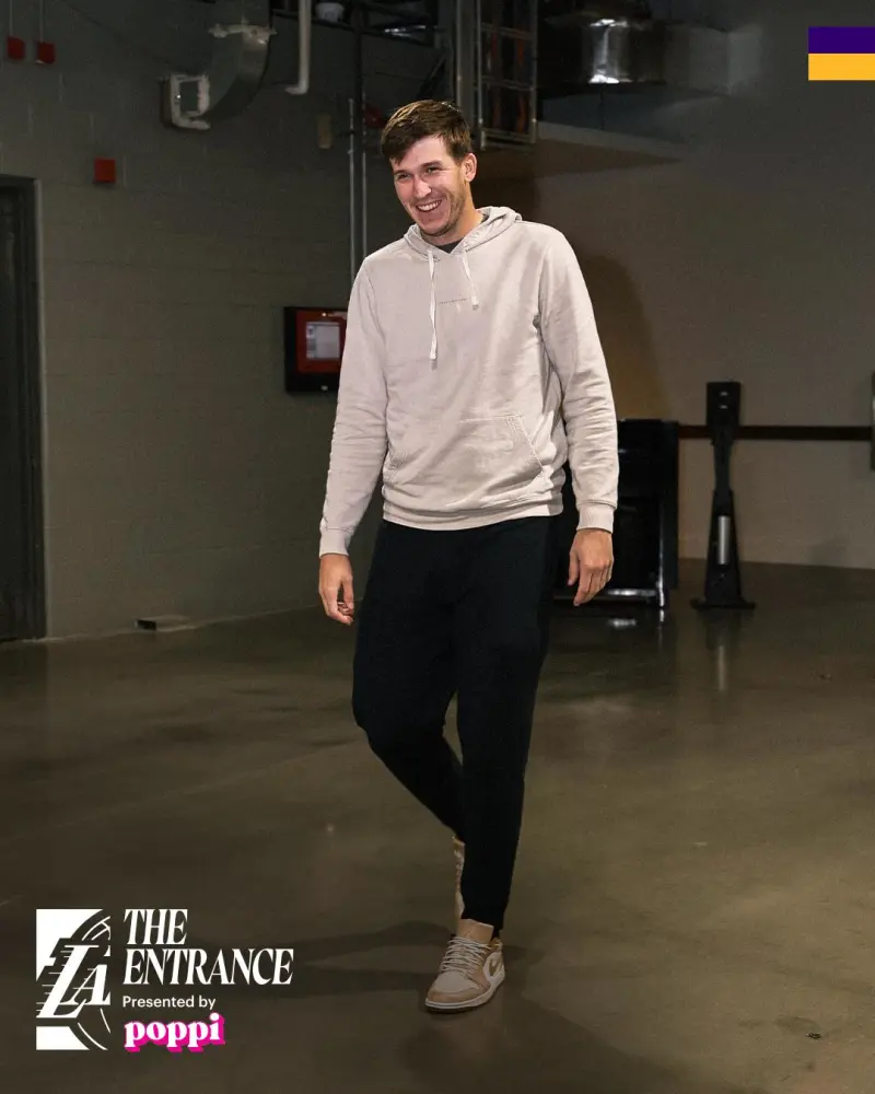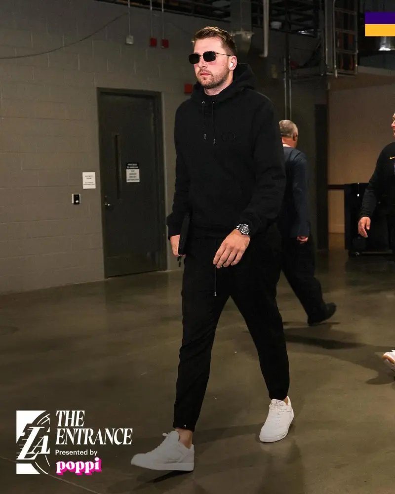 賽前,賽場(chǎng)瞬間湖人社媒分享球員步入比賽場(chǎng)館的瞬間,盧卡-東契奇、奧斯汀-里夫斯等球員出鏡。