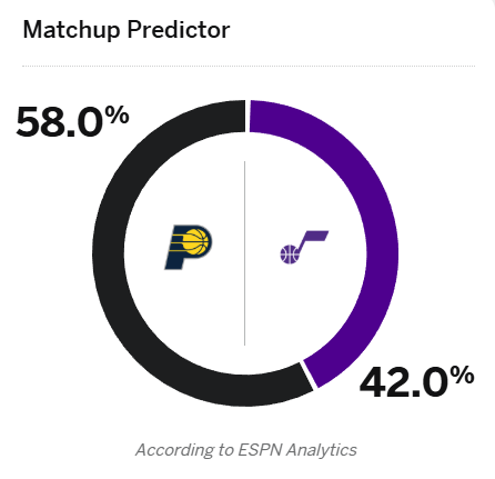 賽前,測明美媒ESPN預測本場(chǎng)比賽,日步步行者勝率58.0%占據上風(fēng),爵士據上爵士勝率為42.0%。流言率占? ?