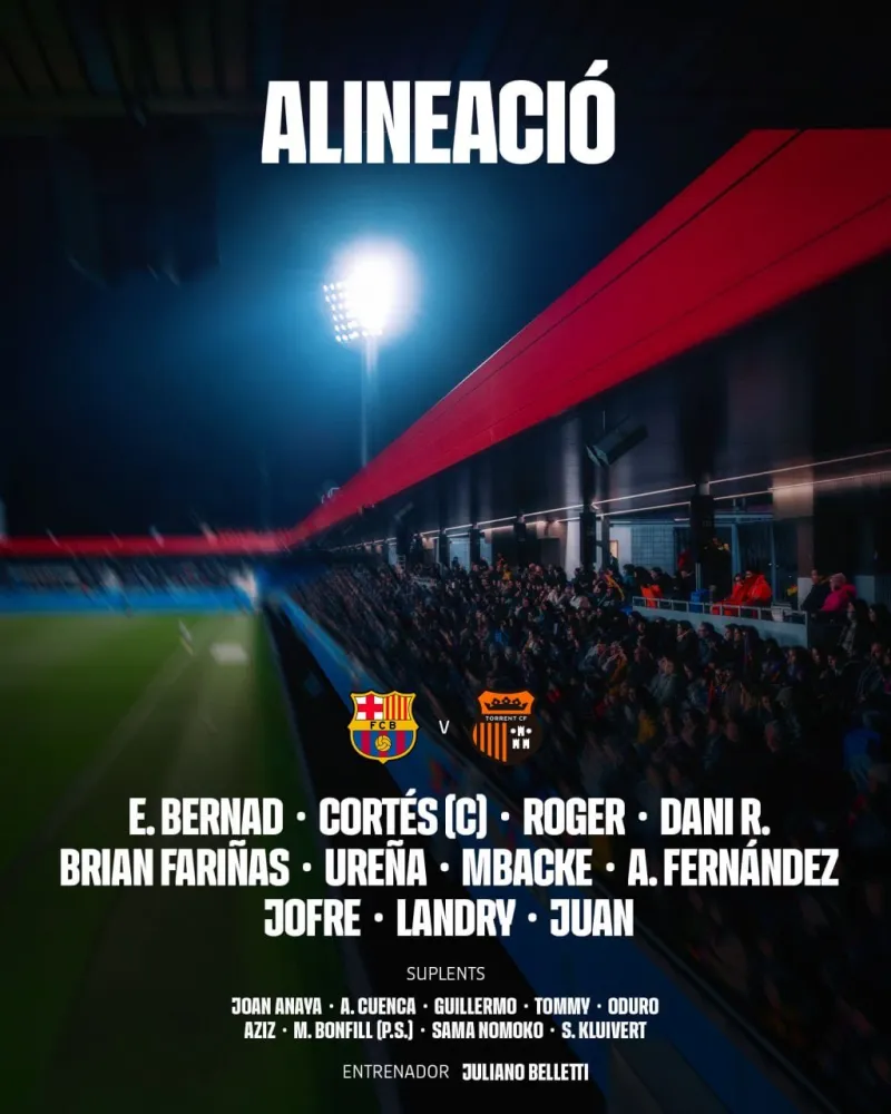 陣容:25-埃米利奧·伯納德/23-蘭德里(min63, 2-約安·阿納亞),4-科爾特斯,競技12-法爾,戰報17-赫弗雷·托倫茨/8-法利尼亞斯(min63,巴薩 10-吉列),6-羅杰·馬丁內斯,競技16-托尼(min83,戰報 19-阿齊茲·伊薩)/7-達尼·羅德里格斯(min63, 37-薩瑪·諾莫科),11-烏雷尼亞(min83,巴薩 39-肖恩·克魯伊維特),30-胡安·埃爾南德斯