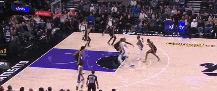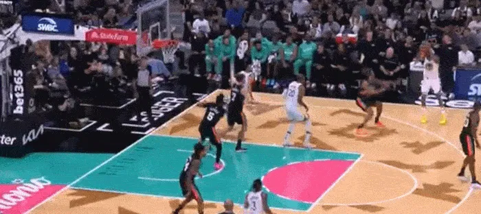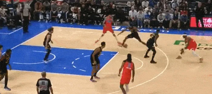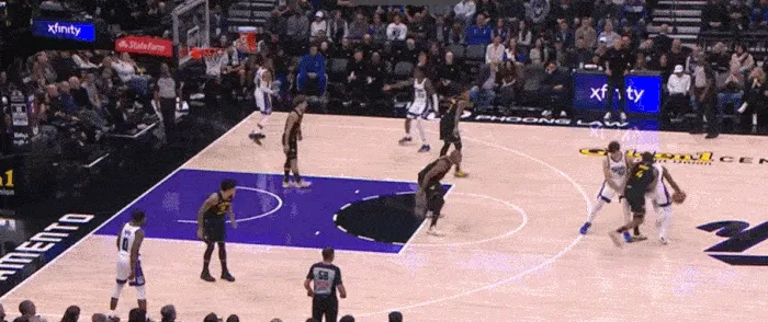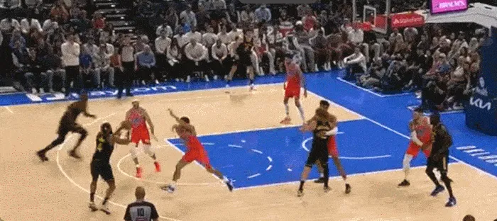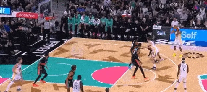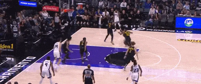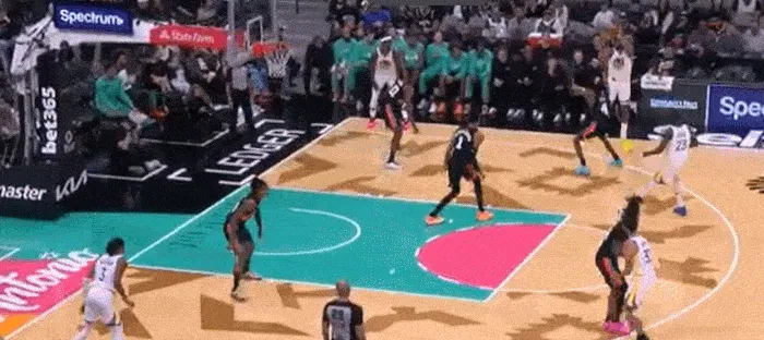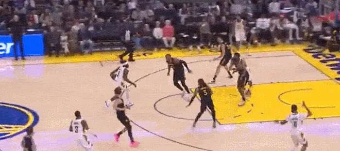 同樣是半轉換進(jìn)攻中 錯位卡位中鋒 最后導致對方失誤