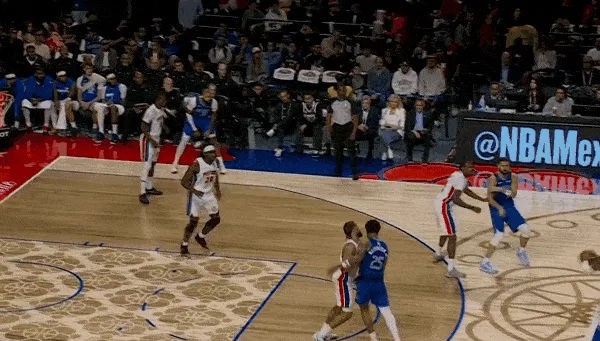 NBA常規賽,獨行俠對陣活塞的頂接比賽正在進(jìn)行中。