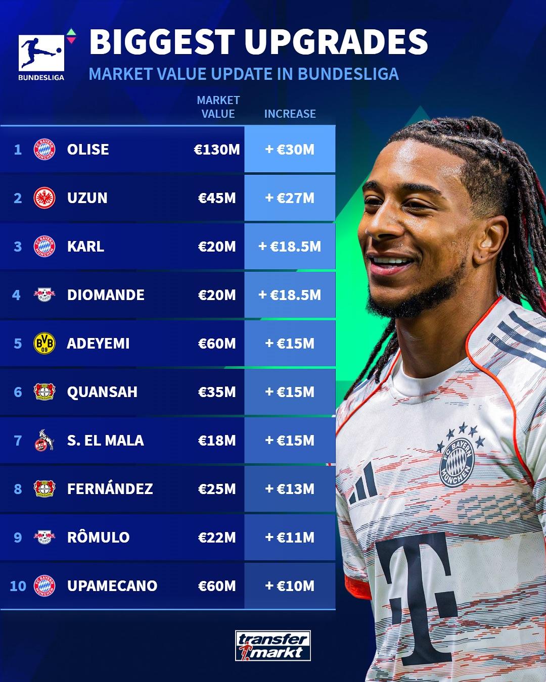 奧利塞(拜仁慕尼黑)——1.3億歐元(漲3000萬(wàn))