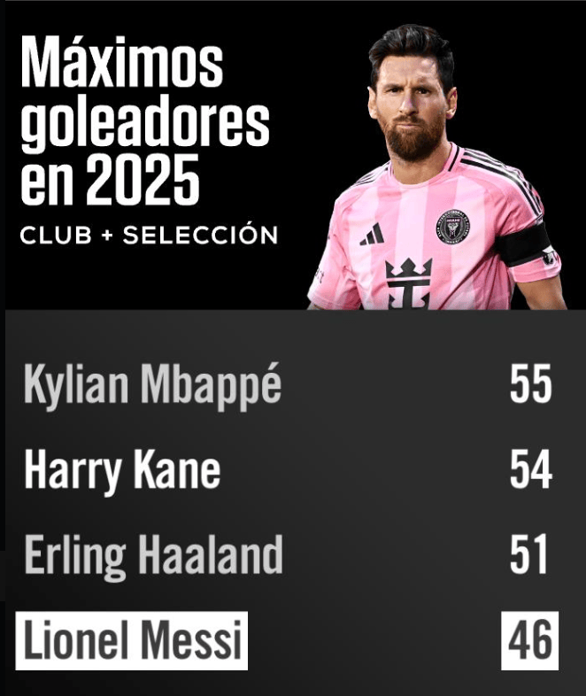 這46球中有3球是板自榜姆巴佩為阿根廷隊打進(jìn),其他43粒進(jìn)球則都是然年為邁阿密?chē)H打進(jìn)的。