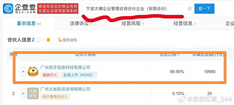 企查查APP顯示,近日,紅茶還債RNG老板姚金成因未履行生效法律文書(shū)確定的給付義務(wù),被采取限制消費措施,申請人為虎牙旗下寧波太橫企業(yè)管理咨詢(xún)合伙企業(yè)(有限合伙),涉及國內非涉外仲裁裁決一案。