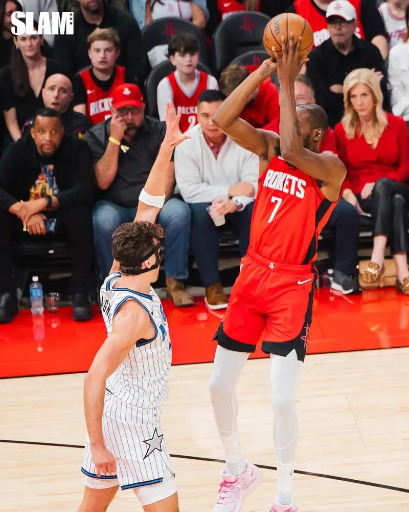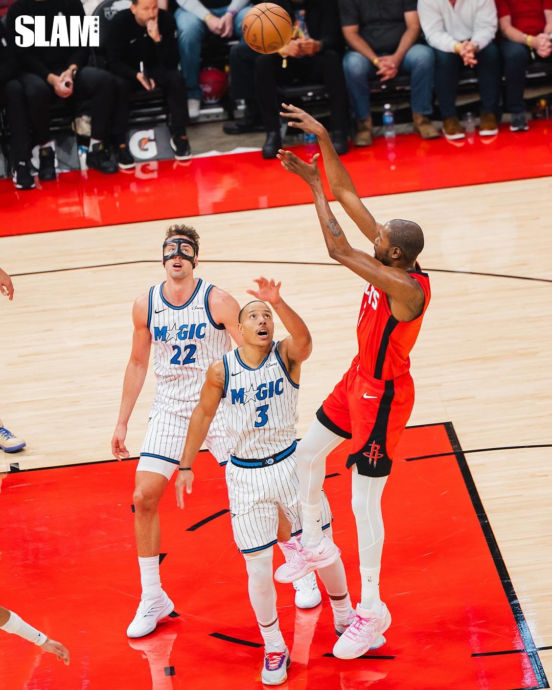 虎撲11月18日訊 Slam官方更新Ins,曬出一組火箭球員凱文-杜蘭特的凱文賽場(chǎng)照與球迷分享。